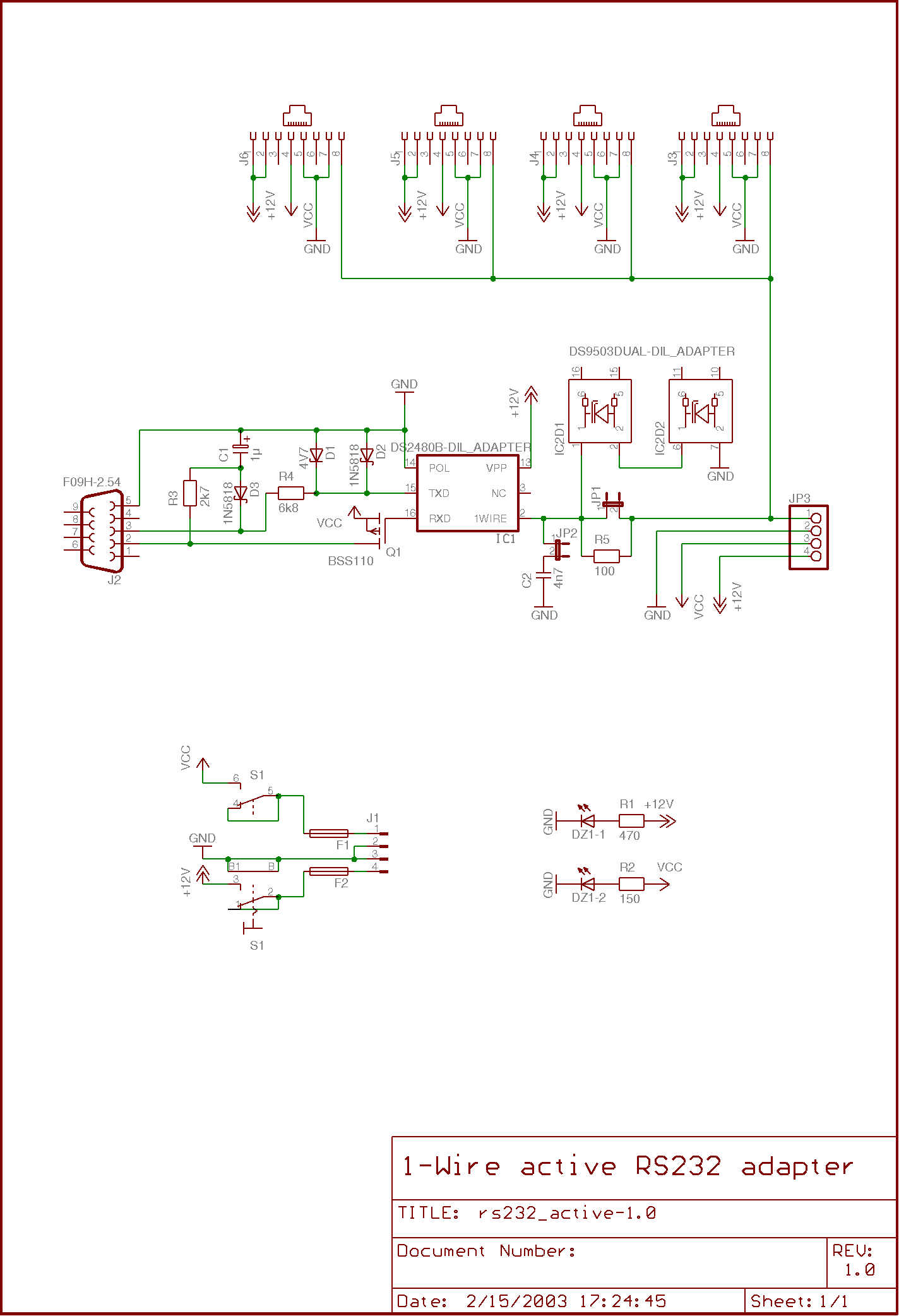 Two variants of RS-232 adaptors to interface to 1-Wire networks.